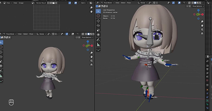 リギングの基礎ではキャラクターにポーズを付ける方法を学びます。