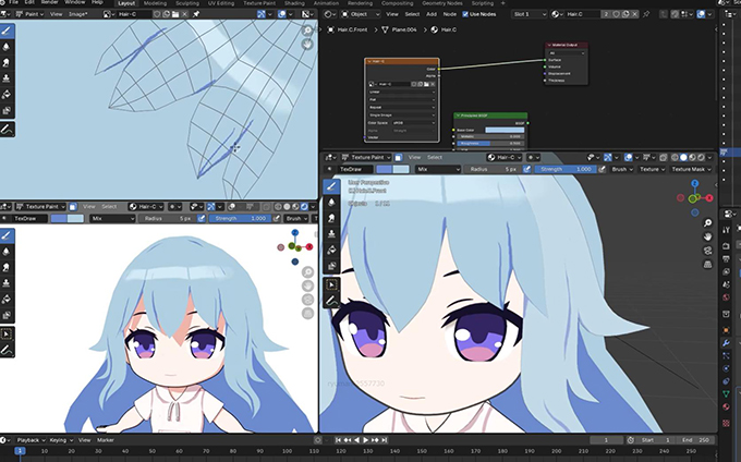 髪の毛はUV展開とテクスチャの描き方も詳しく紹介されています。