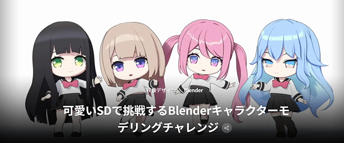 Blenderでキャラクター制作を始めたい人、SDキャラクターを作ってみたい人、そしてモデリングだけでなくテクスチャやレンダリングまで一通りの流れを学びたい人は、可愛いSDで挑戦するBlenderキャラクターモデリングチャレンジを視聴してみてはいかがでしょうか。