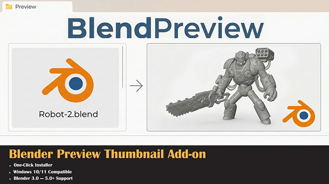 Blender Preview Thumbnailは、WindowsのエクスプローラーでBlenderファイルのサムネイルが通常Blenderロゴが表示されますが、代わりに中身をプレビュー表示して、何が入っているのか分かりやすくしてくれるアドオンです。