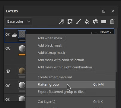 また、フラット化したテクスチャをレイヤー・マスク・グループから右クリックメニューから直ぐに書き出す事が可能になりました。