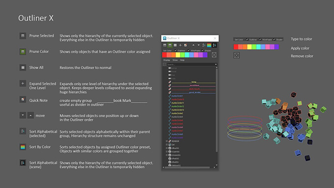 outliner X for Mayaの主な機能