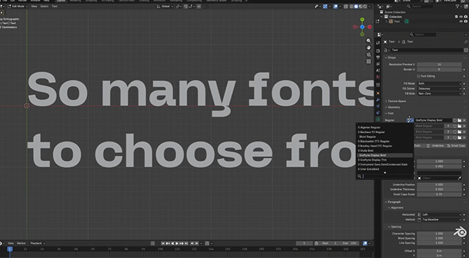 大量のフォントからテキストを選ぶ事が可能になりました。また、3Dテキストでは輪郭が重なり合う部分も正しく処理して綺麗に立体化する事が可能となっています。