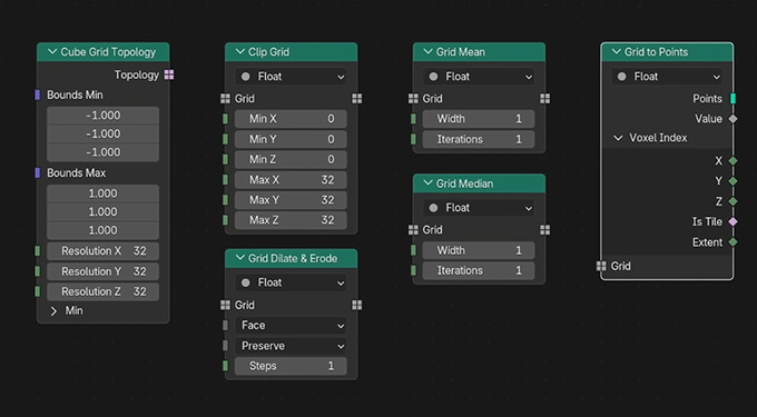 ボリュームグリッドをゼロから作成したり、セルの数を拡大または縮小したり、ポイントに変換したりできます。
