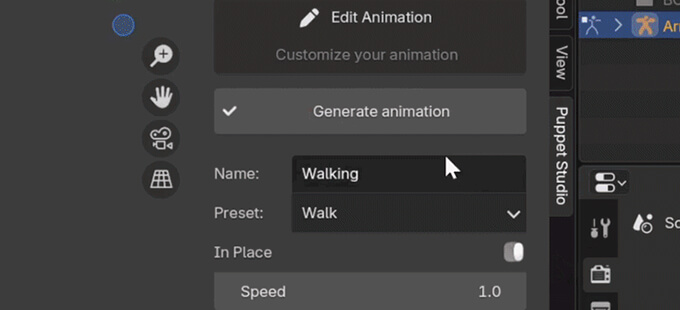 Puppet Studio (Beta)は、Blenderでキャラクターのリグ作成からアニメーション生成までをシンプルな操作で行えるアドオンです。