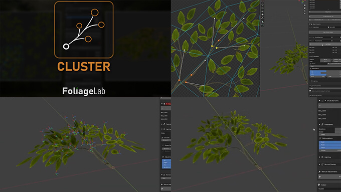 板ポリ植物モデルを生やすように配置できるBlenderアドオン「FoliageLab – Cluster」