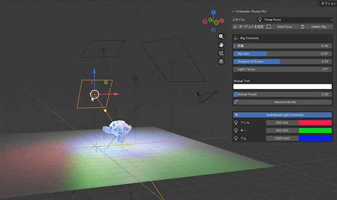 Cinematic Studio Pro – スリーポイントライトなど8種類のライトを1クリック作成してモデルに追従・個別調整出来る無料アドオン