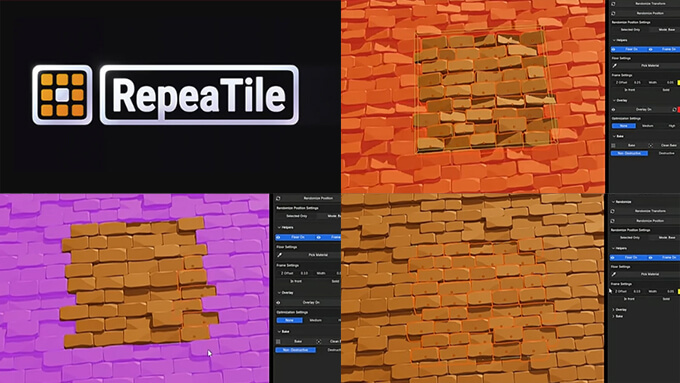 RepeaTileは、Blenderで正方形の枠内で1つのタイルを作りながらリアルタイムでタイリング結果を確認・調整できるアドオンです。実際に使っている内容はこちらから動画で確認する事ができます。