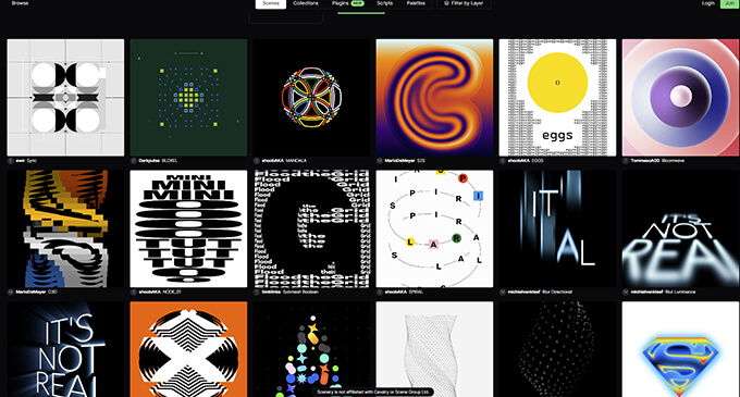 Cavalryで作成した数百のシーンファイルはこちらのページから自由にダウンロード可能なので、どのような事が出来るのか、実際にどう作られているのか中身を確認する事も出来ます。(作品のライセンスはそれぞれ要確認)