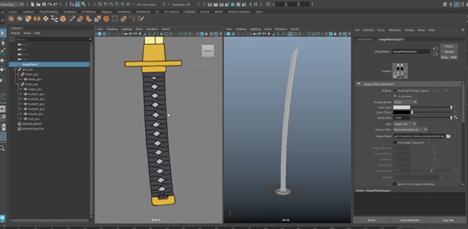 最初は、刀をモデリングと質感のつけ方を4時間程かけてじっくり学んでいきます。