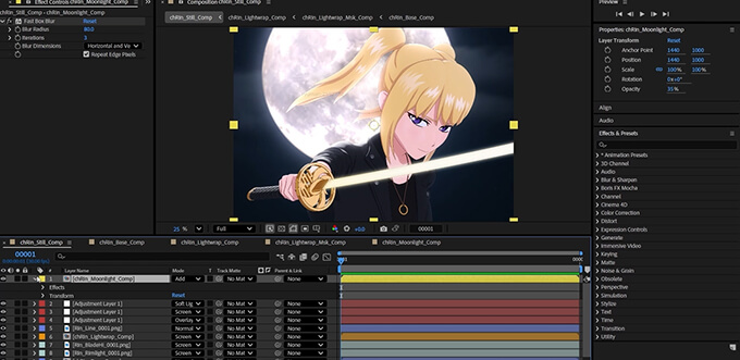 カメラや構図を決めながらポーズを微調整し、レンダリングで確認しつつ細かいバランスを整えていきます。最終的にはカラーやライン、リムライトなどの素材を書き出し、1枚絵として仕上げる準備を行う工程が紹介されています。